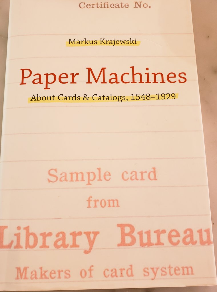 "Paper Machines: About Card Catalogs, 1548-1928", by Markus Krajewski.