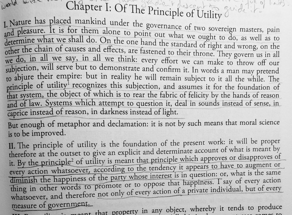 Interestingly, this "felicific calculus" has all the properties of something you can optimise though gradient descent.