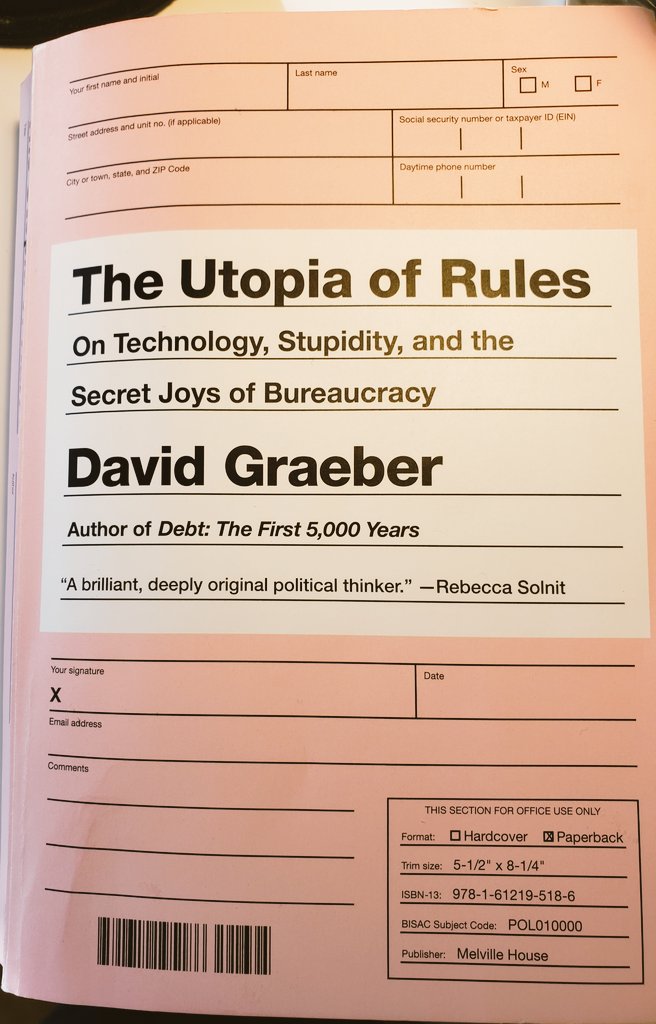 "The Utopia of Rules: On Technology, Stupidity, and the Secret Joys of Bureaucracy", by David Graeber.