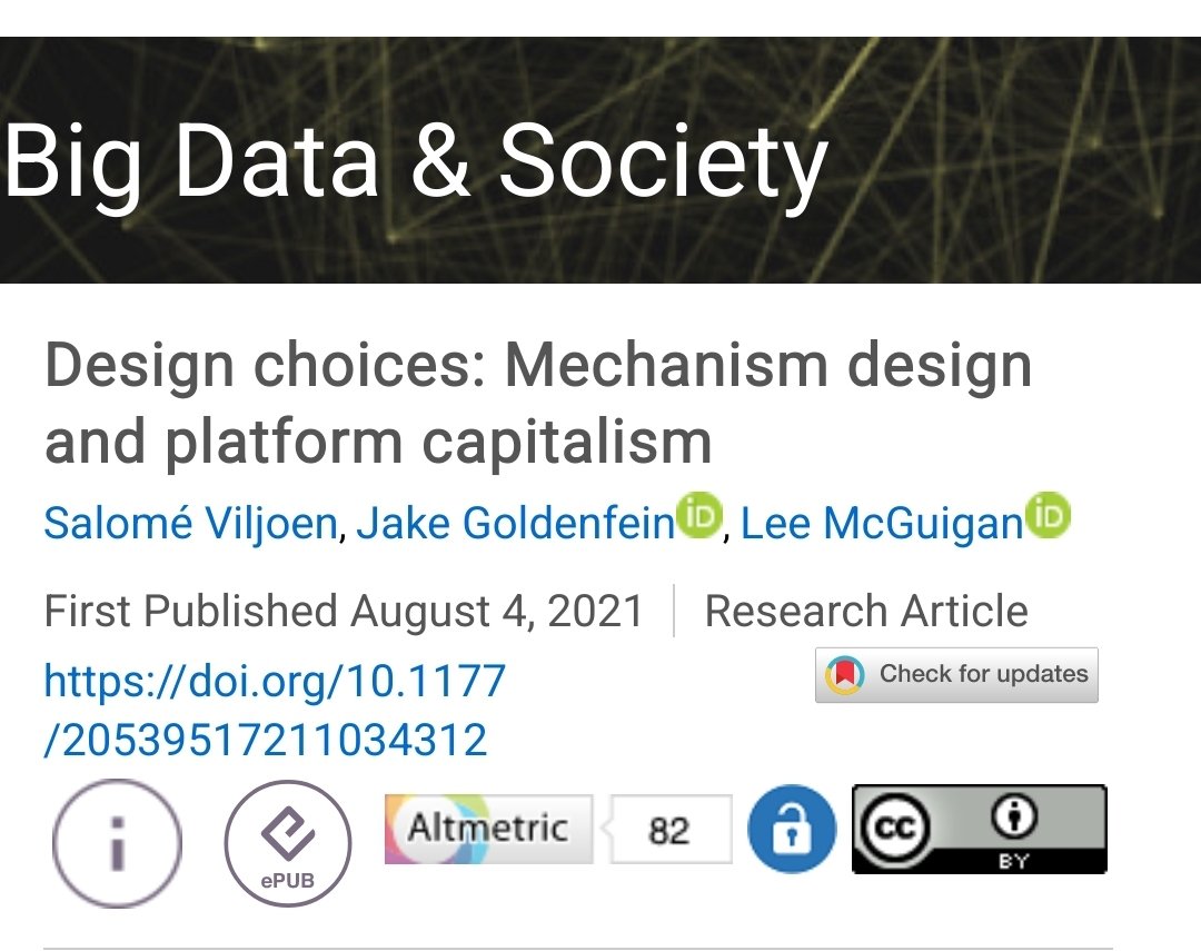 "Design choices: Mechanism design and platform capitalism" by @salome_viljoen_, @jakusg, and @LJamesMcGuigan.