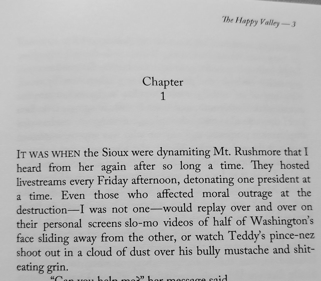 I loved this! It's hard to describe well, in a sense like one of those cocktails the ingredient list for which seems like it could never mix but that come out exquisite. And the structure really works too, enticing hints to the last chapter.